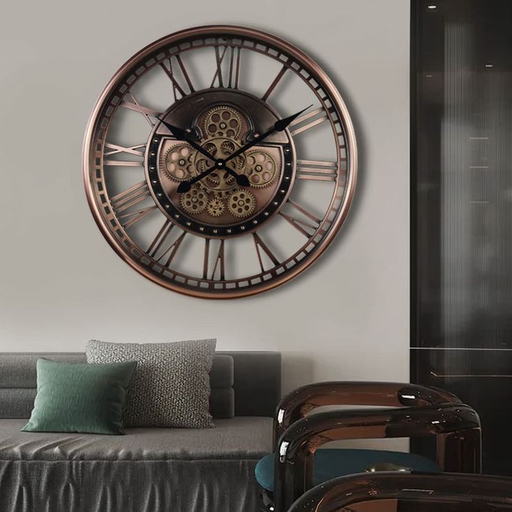 Dehliamart Indoor Round Bronze Cutout Gear Industrial Analog Wall Clock